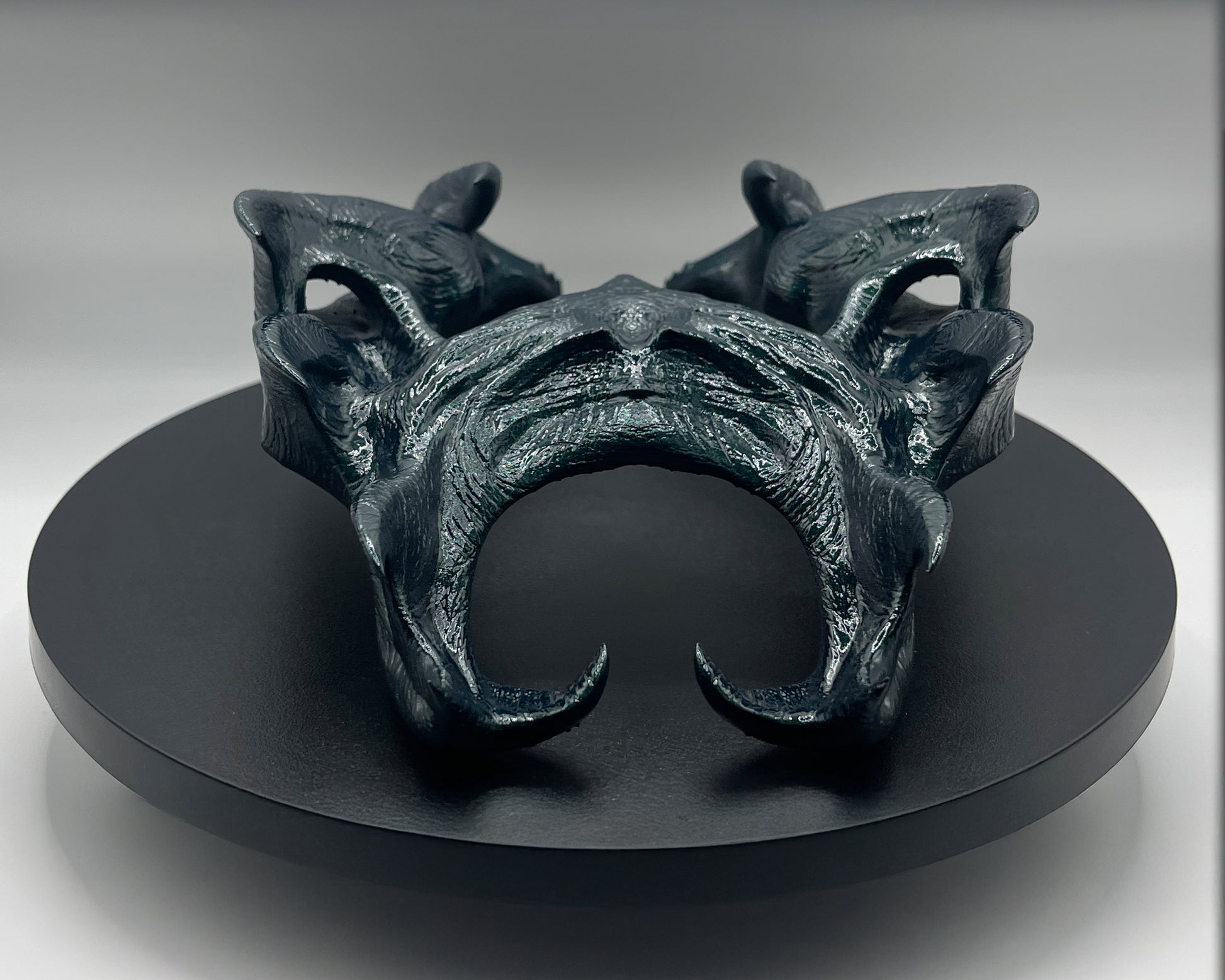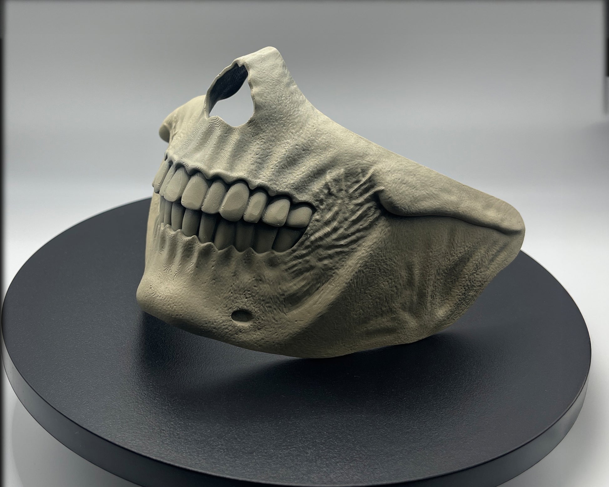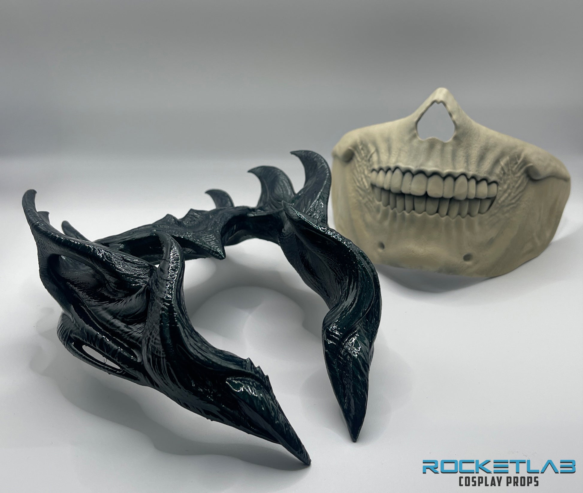 Mask and Skull are printed in resin to preserve the high level detailing in the models.